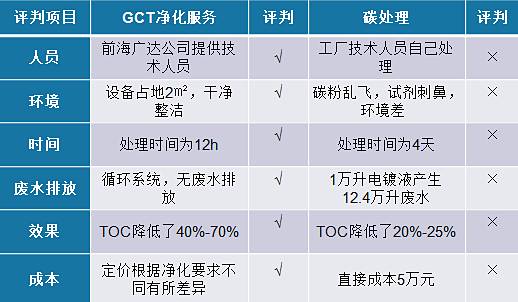 GCT电镀溶液净化服务,可使TOC降低率提高至70%,根据需要进行处理。无污染,无废水。