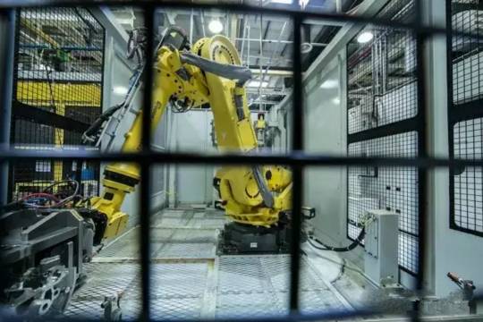 同时由于采用机器人传输零件,它还是一个高度柔性化的生产线。